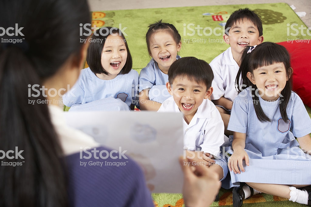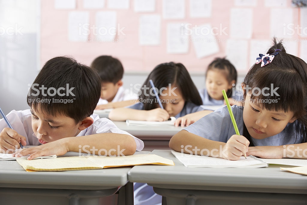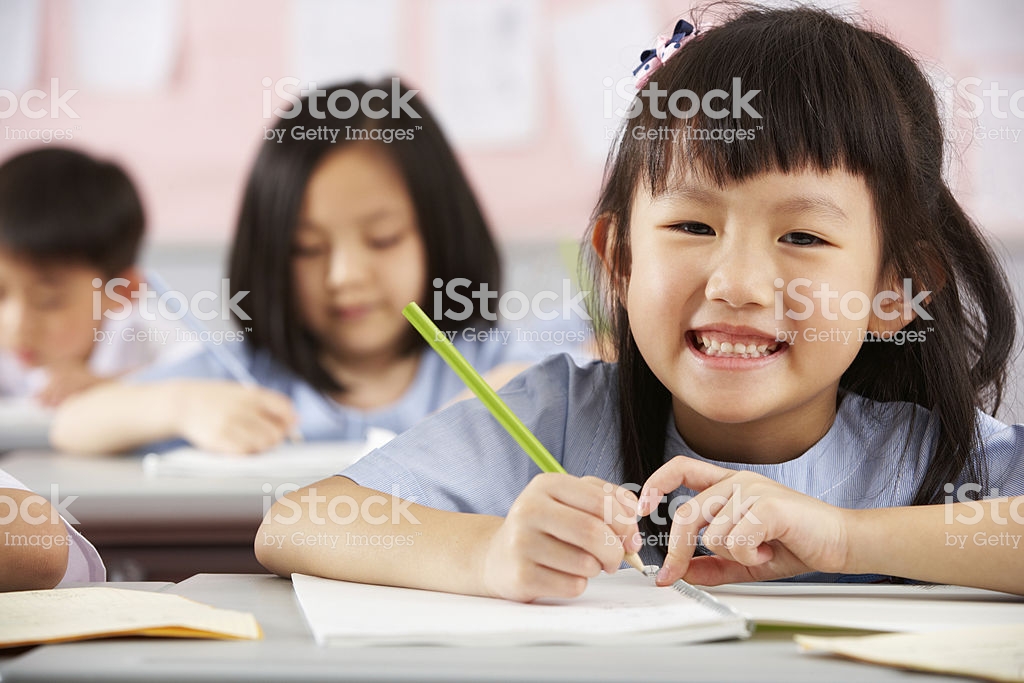 Portait Of Students In Chinese School Classroom Laughing At Camera